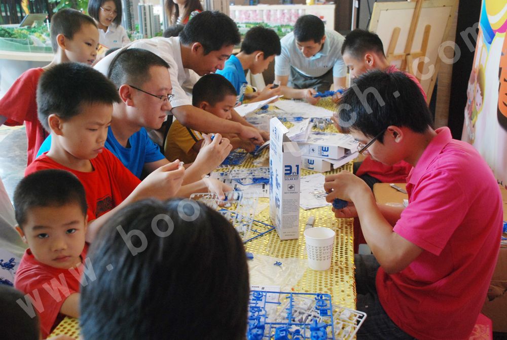 除了機器人大跳江南style外,現(xiàn)場還設(shè)立了DIY互動區(qū),游客們可以親手組裝機器人,體驗歡樂有趣的過程,把組裝好的機器人帶回家,孩子們都顯得特別有成就感。