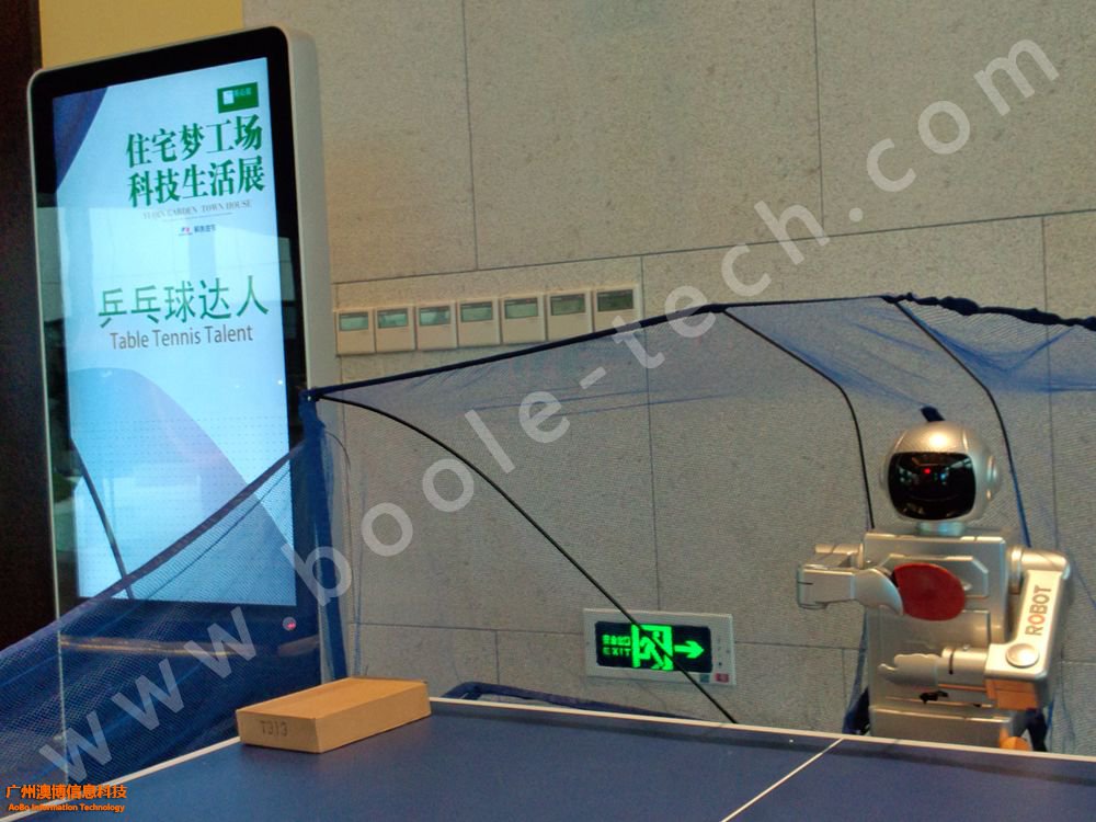 游客正在與機器人打乒乓球