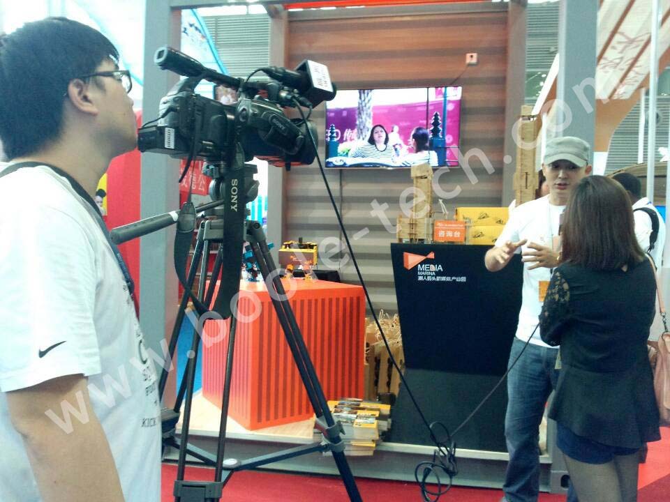 應參展商邀請,我們共推出多款智能機器人,助陣“潮人碼頭”參展商,多臺舞蹈機器人一起跳舞,吸引了現場很多游客圍觀,同時也有不少電視臺記者采訪,“機器人表演”成為了展會中一個亮點。